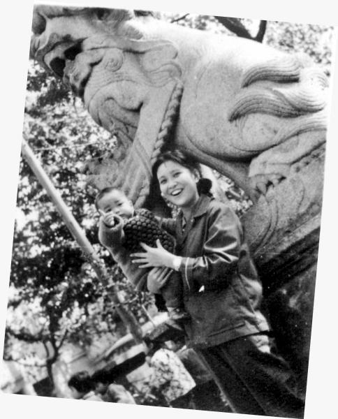△ 1976年10月,作者家人在三角花园的合影,背后的石狮后来被移到了岳麓山下。