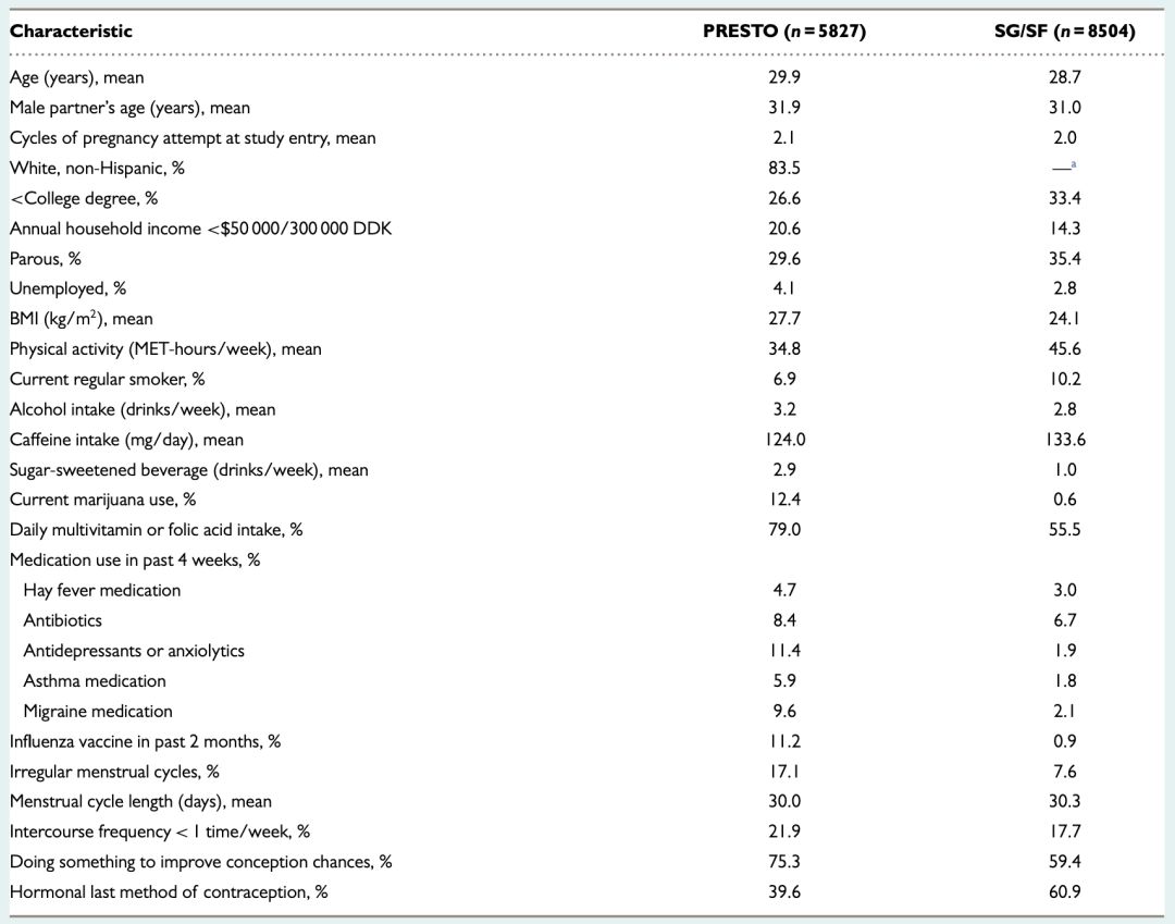 随后,每过两个月,研究人员会对这些妇女进行一次详细检查,直到她们怀孕或备孕12个月经周期,在此期间,每个妇女需要提供有关性交频率、月经、吸烟、饮食、教育和收入等所有信息,如下图所示。