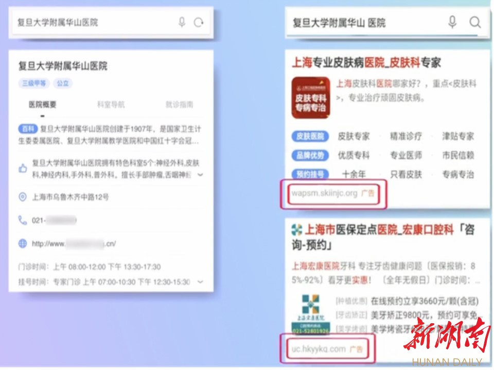实际上,违规医疗广告从未彻底离开互联网。目前,在多个搜索引擎搜索结果内,都能找到民营医院的广告链接,只不过打上了“广告”字样以提示用户。