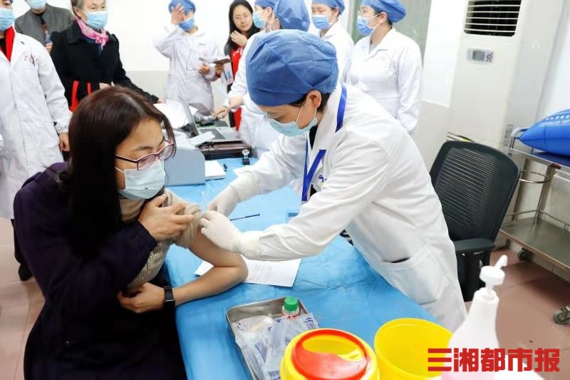 三湘都市报·新湖南客户端3月18日讯(通讯员 彭娟 记者 胡锐)3月17日,长沙市岳麓区率先启动高校师生新冠疫苗预约接种服务。当天,湖南大学部分师生在校内的临时接种点有序接种首针新冠疫苗。