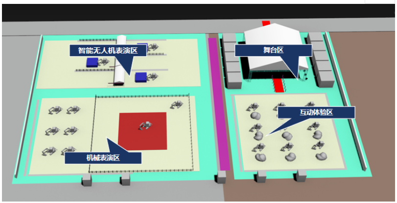 本次表演展扩大规模,面积由1万平方米增至1.5万平方米。展区划分成四个区域:观众互动体验区、机手技能表演竞赛区、智能无人机械表演区域、舞台区,现场展示表演的设备涵盖“陆、海、空”多个板块。
