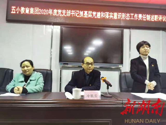科教新报·新湖南客户端(通讯员 刘佳迎)2月25日,南县五小教育集团党支部召开了2021年第一次全体党员会议。此次会议三会合一,分别是2020年度党支部书记抓基层党建和落实意识形态工作责任制述职评议会、2020年度组织生活会暨民主评议党员大会、2021年2月份主题党日活动会。学校党支部书记姚建红主持会议,五小在职党员及4位退休老党员参加会议,会议还特邀南县教育局副局长冷凯云参会。
