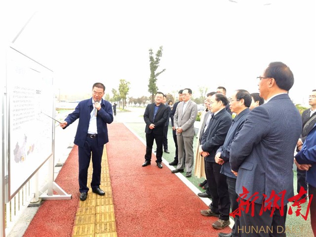 (考察组一行在望城区海归小镇大泽湖调研。)
