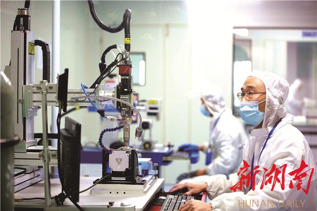 (在松诺盟的洁净车间内,专业人员正在操作精密仪器。刘珂 摄)