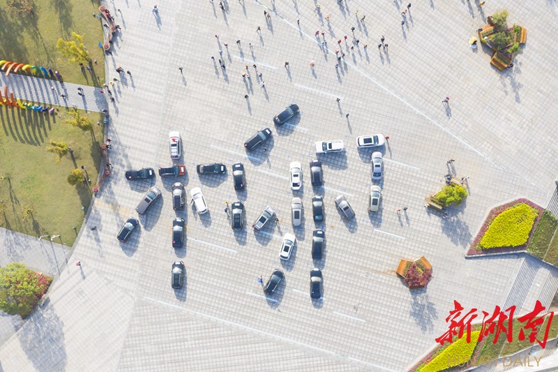 记者在“万人自驾寻春柳叶湖”活动启动仪式现场看到,28辆自驾游车辆,组成一个巨大的“柳”字。欢歌热舞之后,来自全国各地的近400辆自驾车组成车队,开往柳叶湖卡乐星球游乐园,开启旅游新体验。