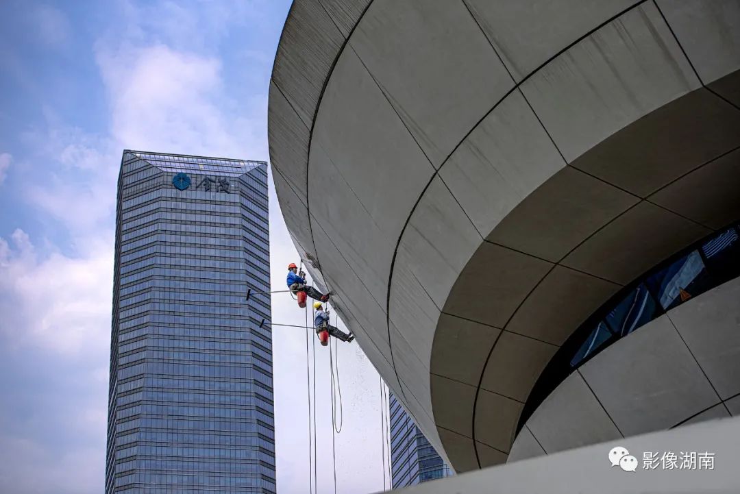 ■ 2020年5月13日,梅溪湖大剧院,工作人员正在清洁外墙。
