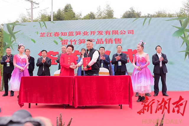 湖南日报·新湖南客户端3月25日讯(记者 黄巍 雷鸿涛 通讯员 龚卫国)春回大地舞水暖,雨后春笋拔尖忙。3月25日,芷江春知蓝笋业首届采笋文化节,在位于芷江镇五里牌村的春知蓝笋业开发有限公司举行。小小笋子,带动上千贫困群众脱贫致富,成为大产业。