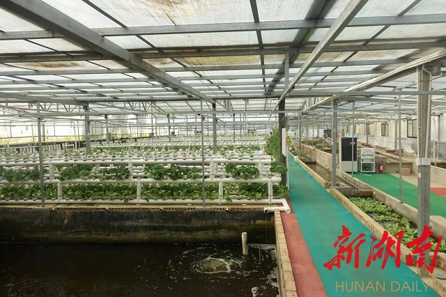一排排无土盆子里生长的各类蔬菜青翠芳香,一条条优质鱼儿在水中跃起一串串欢乐的涟渏,漫步湖南晨旭农业科技有限公司鱼菜共生的种养大棚里,透过阳光板折射进来的春日暖阳,犹如走进了一座自然生态的天然氧吧,让人心旷神怡。