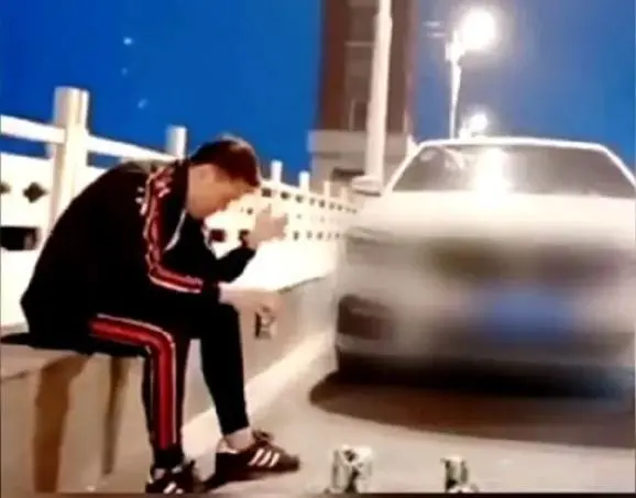 该播主想出在桥头摆拍“正能量视频”的方法