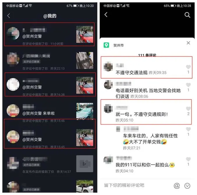 纷纷@贺州交警 进行举报