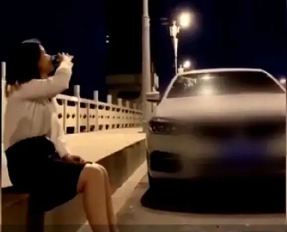 一女子就在马路上直播