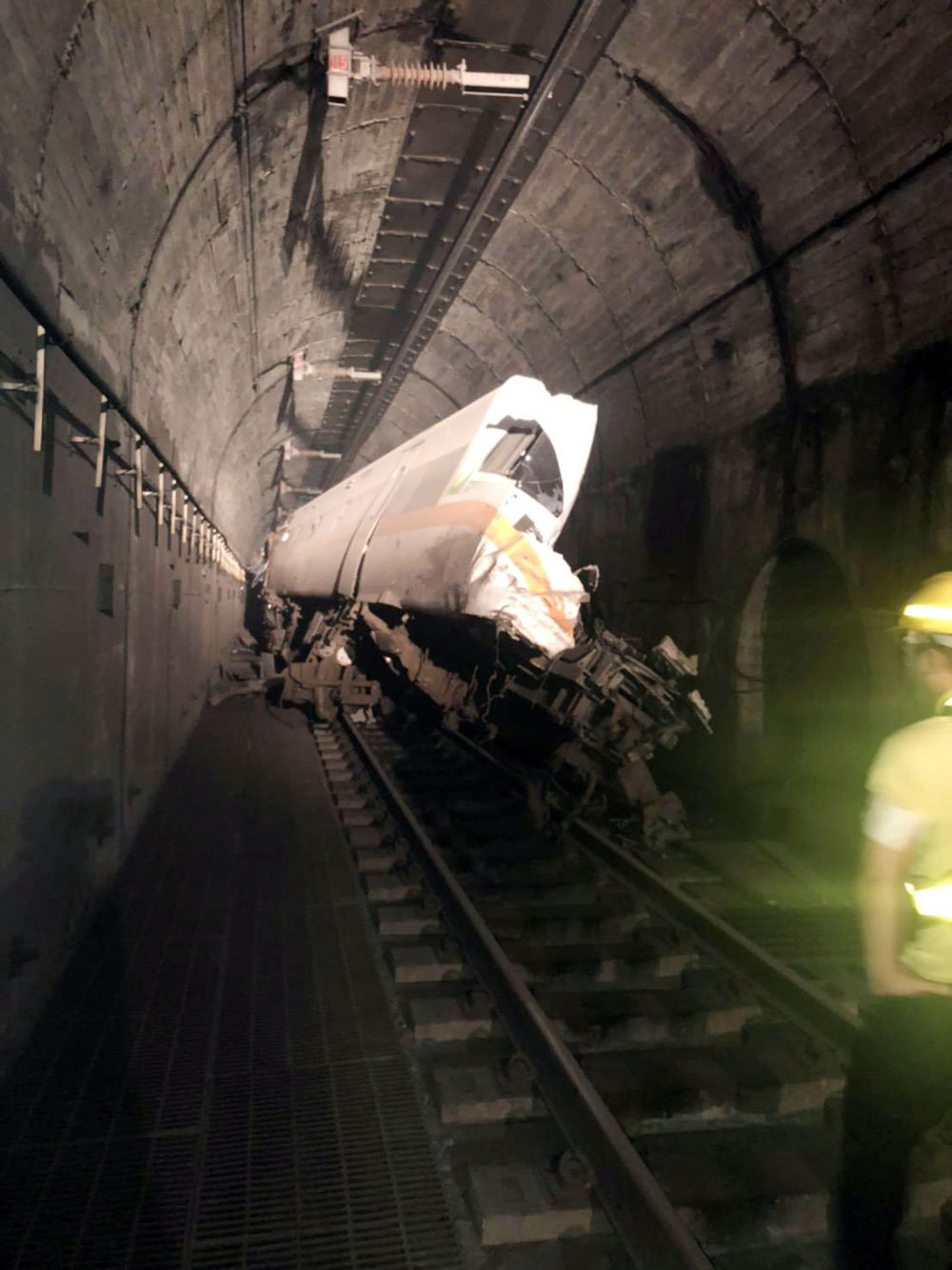 据介绍,列车在大清水隧道出轨造成车辆擦撞隧道壁,第2及第3车厢出轨,第3至第8车厢位于隧道内且部分变形。这趟列车满员为374人,事故发生时几乎客满。