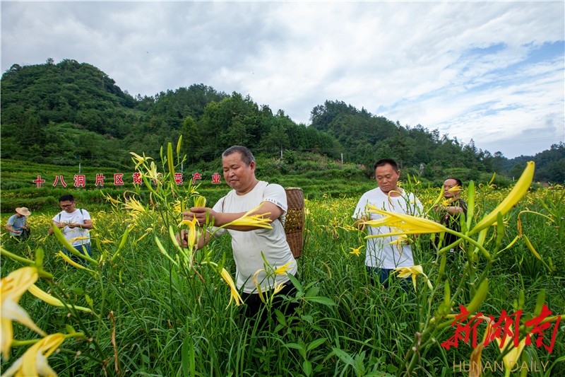 2020年7月9日,十八洞村,村民在采摘黄花菜。该村建成了160余亩的黄花菜产业基地,壮大了村集体经济。姚茂祥 摄