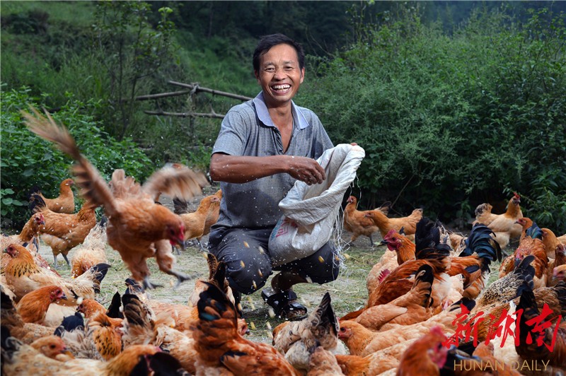 十八洞村村民施关保,养了200多只土鸡、30头黄牛,一年收入至少10万元。湖南日报·新湖南客户端记者 李健 摄