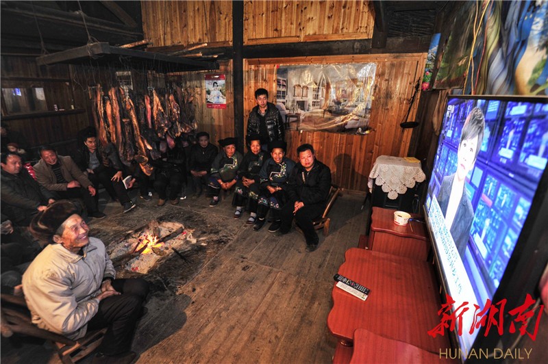2016年2月16日晚上,十八洞村村民聚在一起收看中央电视台新闻联播头条报道《聚焦十八洞村精准扶贫故事》。湖南日报·新湖南客户端记者 童迪 摄