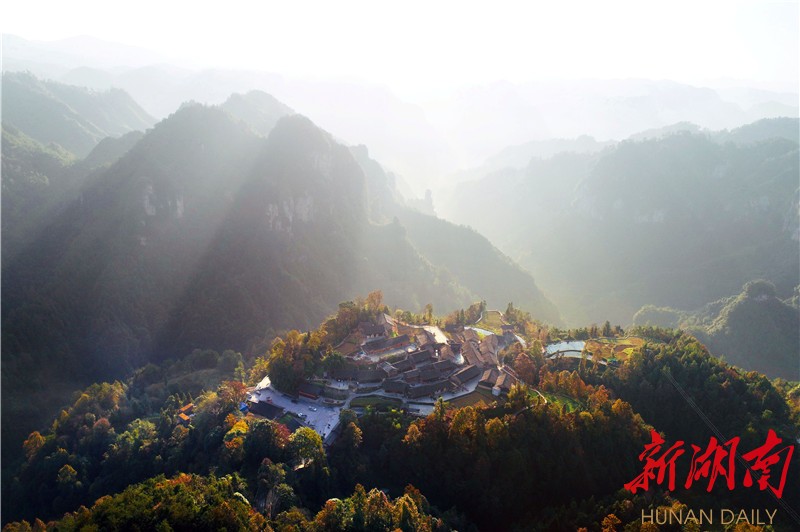 2018年10月29日,十八洞村秋意尽显,色彩斑斓的树叶沐浴在晨曦之中,构成一幅美丽的画卷。湖南日报·新湖南客户端记者 李健 摄