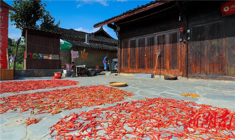 2017年8月20日,十八洞村村民在晒辣椒。龙爱青 摄
