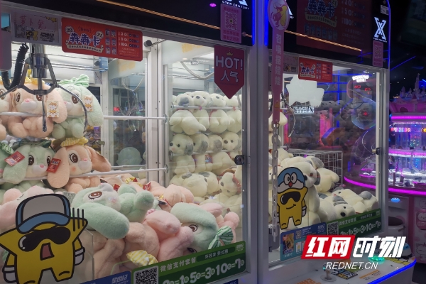 记者走访了位于五一广场的星世纪电玩城与解放西路的城市英雄,发现两家的游戏起步币和快乐街区大致相同,比如,娃娃机都是3个币起步,但相较于快乐街区而言,另外两家的娃娃种类更为丰富,款式也更好看。