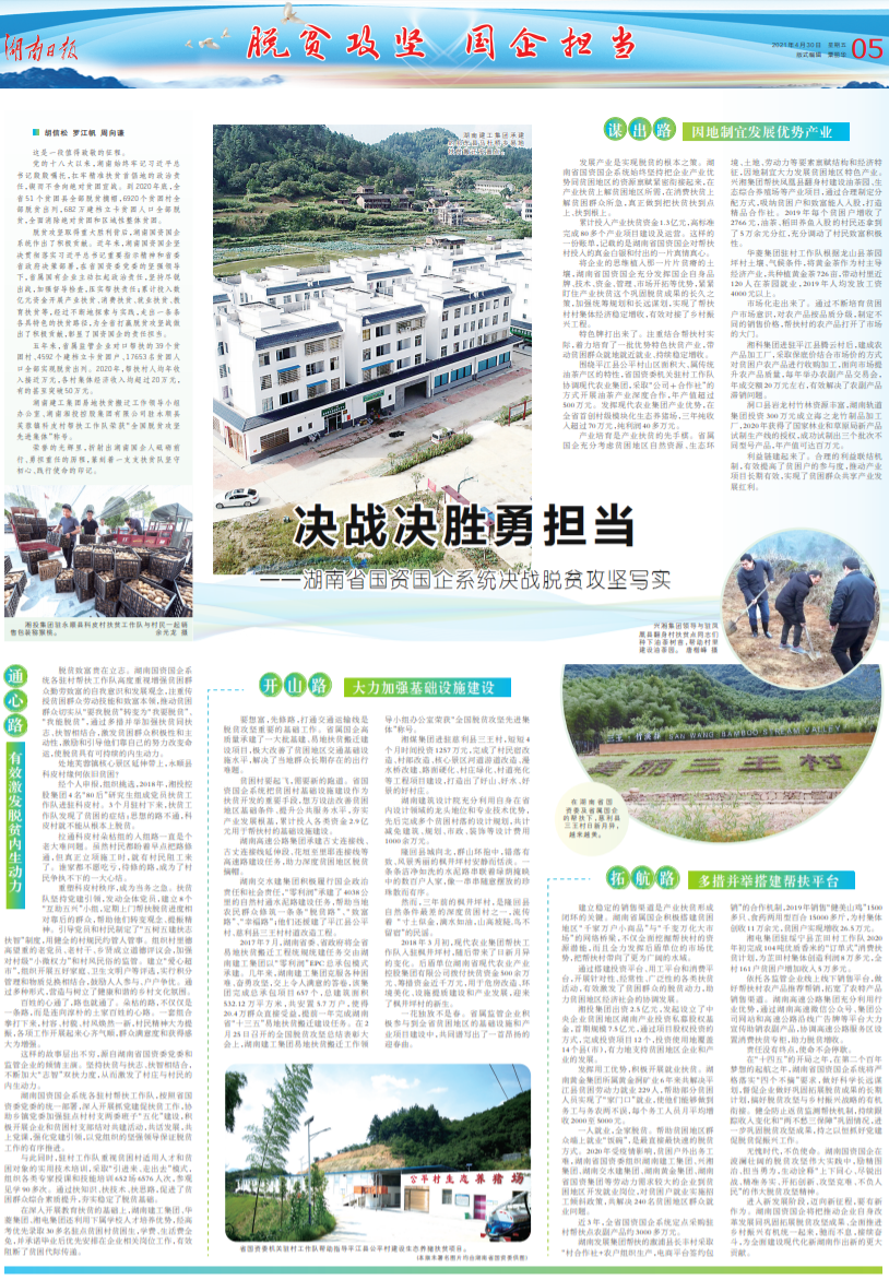 脱贫攻坚取得重大胜利背后,湖南国资国企系统与中央在湘企业作出了积极贡献。近年来,湖南国资国企与中央在湘企业坚决贯彻落实习近平总书记重要指示精神和省委省政府决策部署,在省国资委党委的坚强领导下,国有企业主动扛起政治责任,坚持尽锐出战,加强督导检查,压实帮扶责任;累计投入数亿元资金开展产业扶贫、消费扶贫、就业扶贫、教育扶贫等,经过不断地探索与实践,走出一条条各具特色的扶贫路径,为全省打赢脱贫攻坚战做出了积极贡献,彰显了国资国企的责任担当。
