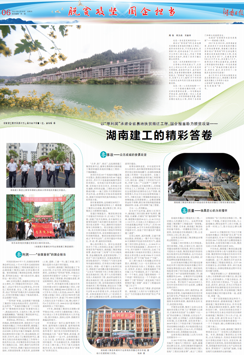 湖南建工集团易地扶贫搬迁工作领导小组办公室、湖南湘投控股集团有限公司驻永顺县芙蓉镇科皮村帮扶工作队荣获“全国脱贫攻坚先进集体”称号。