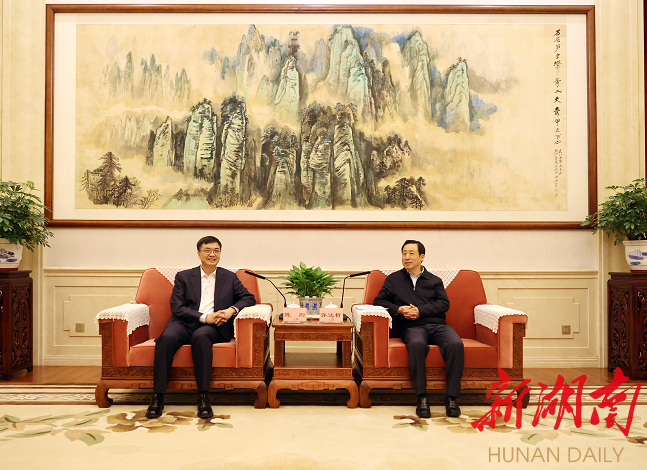 (许达哲、乌兰等会见陈刚一行。以上图片为湖南日报·新湖南客户端记者 赵持 刘尚文 摄)