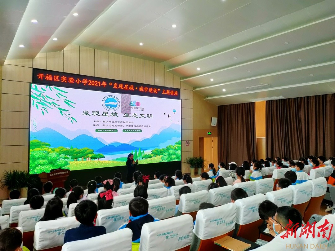 科教新报·新湖南客户端讯(通讯员 凌思)4月27日下午,长沙市开福区实验小学五年级的100位青少年代表,在学校多功能报告厅参加2021年“发现星城·城市建设”主题讲座。他们将作为星城少年代表,以青少年的视角思考、描绘心中的儿童友好城市和儿童友好校园。