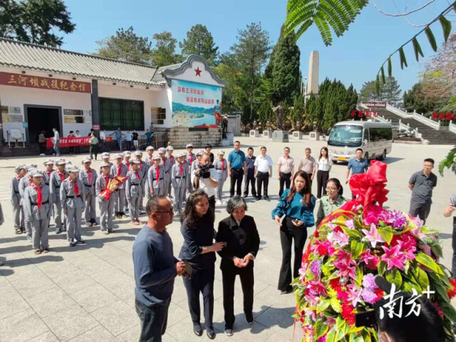 今年,在中国共产党成立100周年之际,为了帮助蔡晴川烈士后裔完成心愿,石门县与大埔县紧密联系,共同为他们的祭奠提供帮助。4月20日至21日,蔡晴川烈士孙女蔡玉翠、曾外孙冯文华、曾外孙女冯金莲,前往梅州市大埔县。在大埔县县委、县政府精心组织的祭奠仪式上,他们在三河坝战役纪念碑前瞻仰革命烈士,为蔡晴川烈士铜像敬献花圈,聆听三河坝战役故事,并从那里捧回一抔黄土,带他魂归故里。