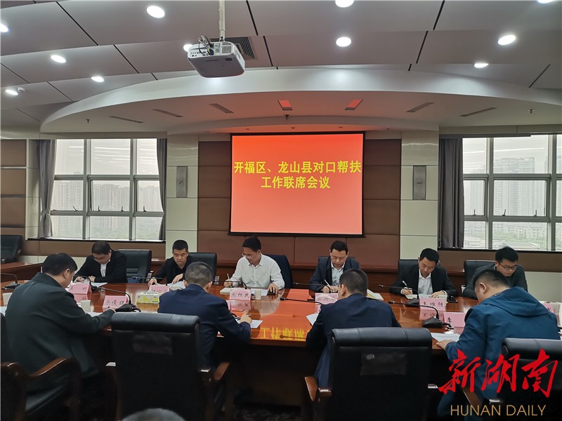 新湖南客户端4月2日讯(通讯员 龙熙坤)为接续推进巩固拓展攻坚成果同乡村振兴有效衔接,3月30日,长沙市开福区与湘西土家族苗族自治州龙山县内溪乡,对口帮扶工作座谈会,在长沙举行。开福区委常委、区委组织部部长晏成方,区农业农村局、区驻龙山内溪乡帮扶工作队等单位主要负责人,龙山县委常委、副县长张红民,副县长梁兴华及内溪乡相关同志参加座谈。