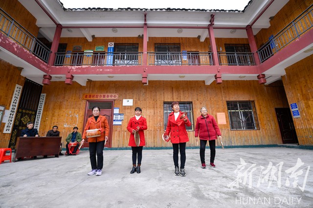 带来精彩“三句半”表演的四位村民分别是龚兴浓、龚浓玉、欧跃桃、龙树妹,都是盘塘村民,年龄最大76岁,最小30岁。