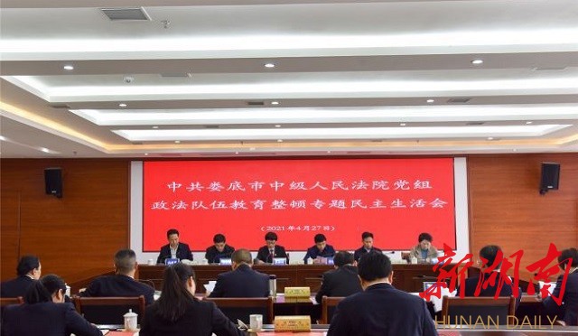 (4月27日下午,娄底市中级人民法院党组召开队伍教育整顿专题民主生活会)
