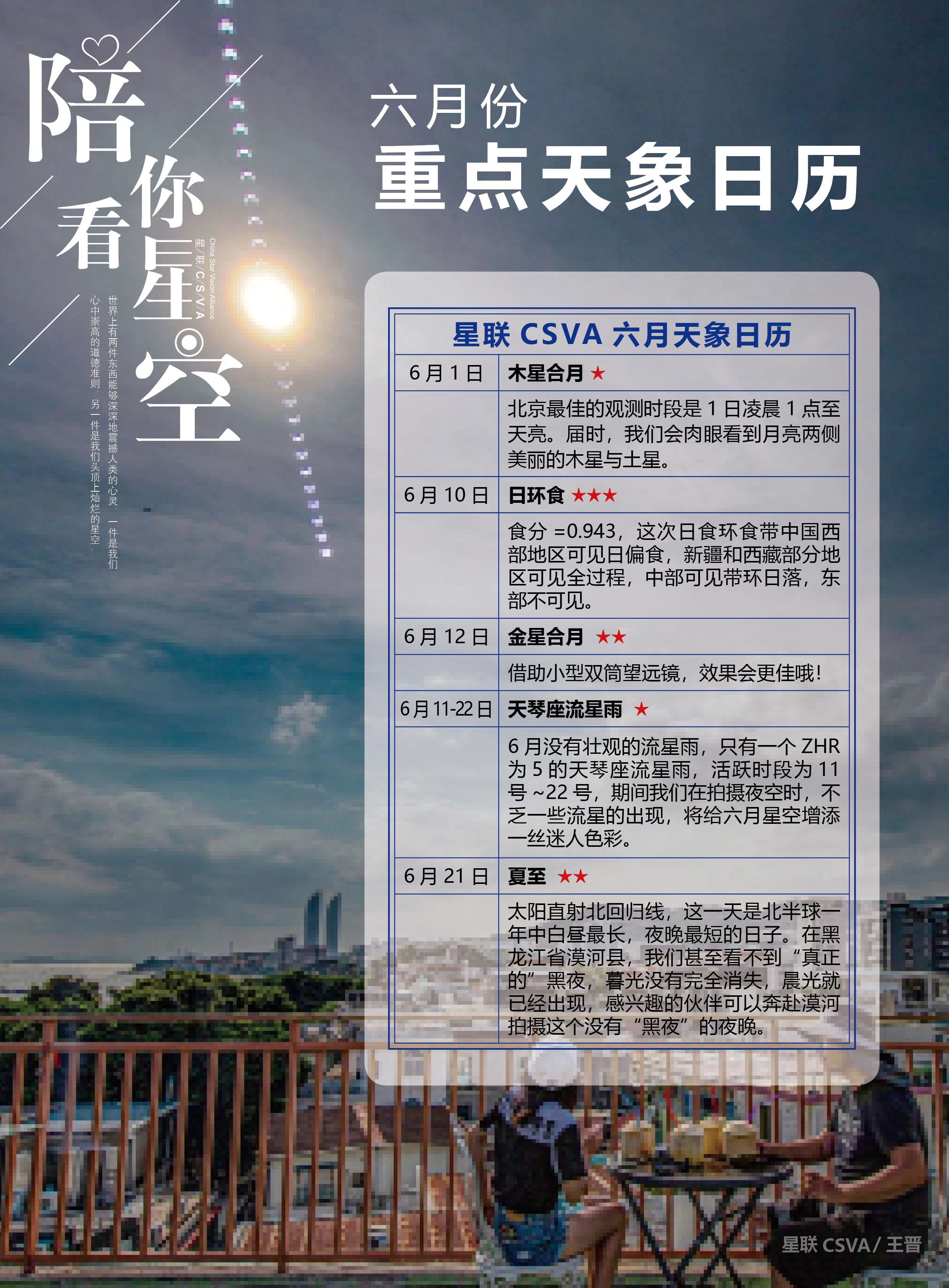 接下来,就让我们来看看星联CSVA研学组为大家准备的六月天象日历。