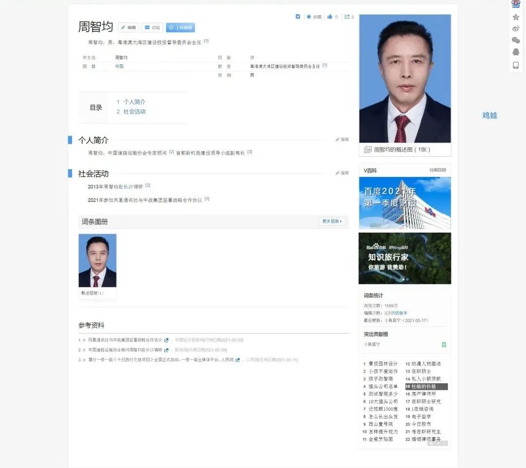 通过搜索引擎简单搜索“周智均”就能找到不少关于其的资料,甚至还有“周智均”的专属百科词条,并配上了标准照。