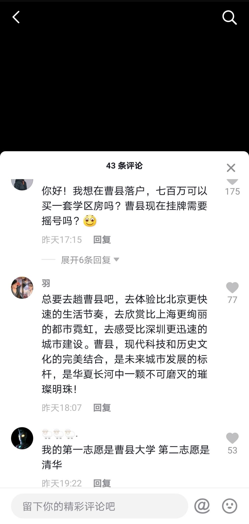 曹县融媒体中心抖音号评论区被这些调侃曹县的网友“攻陷”