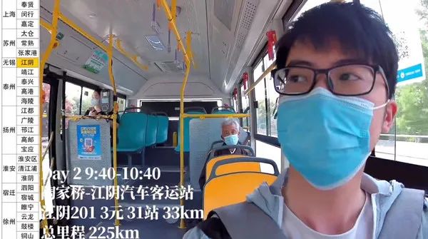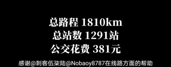 他将自己从出发到结束的所有行程用视频化的方式完整展现,第几天,几点到几点,搭乘哪一路公交,一共多少站,一班多少公里,总里程多少,票价多少等,都进行了详实记录。
