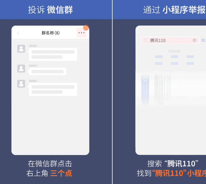 如发现疑似网络赌博等违法违规行为,请第一时间通过客户端或“腾讯110”微信小程序进行投诉,与微信携手打造安全、健康、绿色的平台生态环境。