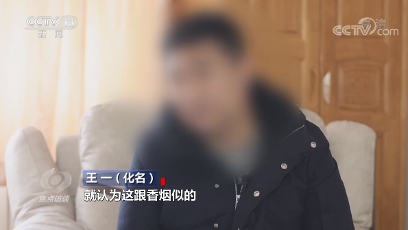 王一(化名):也不用点火用啥的,手拿着就抽就行,就认为这跟香烟似的,看他们抽,他们说就跟烟似的,比抽普通香烟有劲,