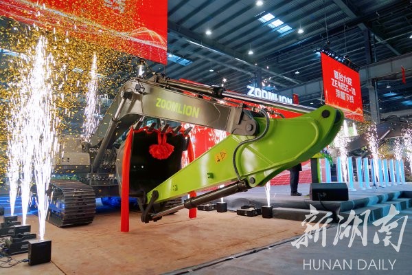△2020年12月31日上午,长沙高新区中联智慧产业城挖掘机械园区完成中大挖装配线安装调试,顺利下线首台挖掘机械。湖南日报·新湖南客户端记者 徐行 通讯员 张恬 摄