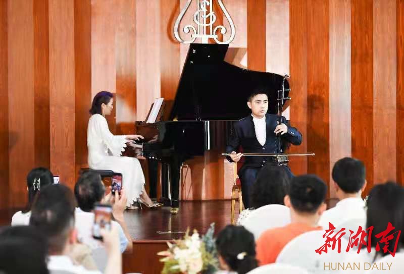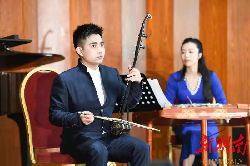 新湖南客户端5月2日讯 5月2日,长沙施坦威艺术生活馆,青年二胡演奏家李朋奇成为了当之无愧的主角。在当天举行的“点亮心灯—西风国韵”慈善雅集音乐会上,他在台上的表演赢得满堂彩。