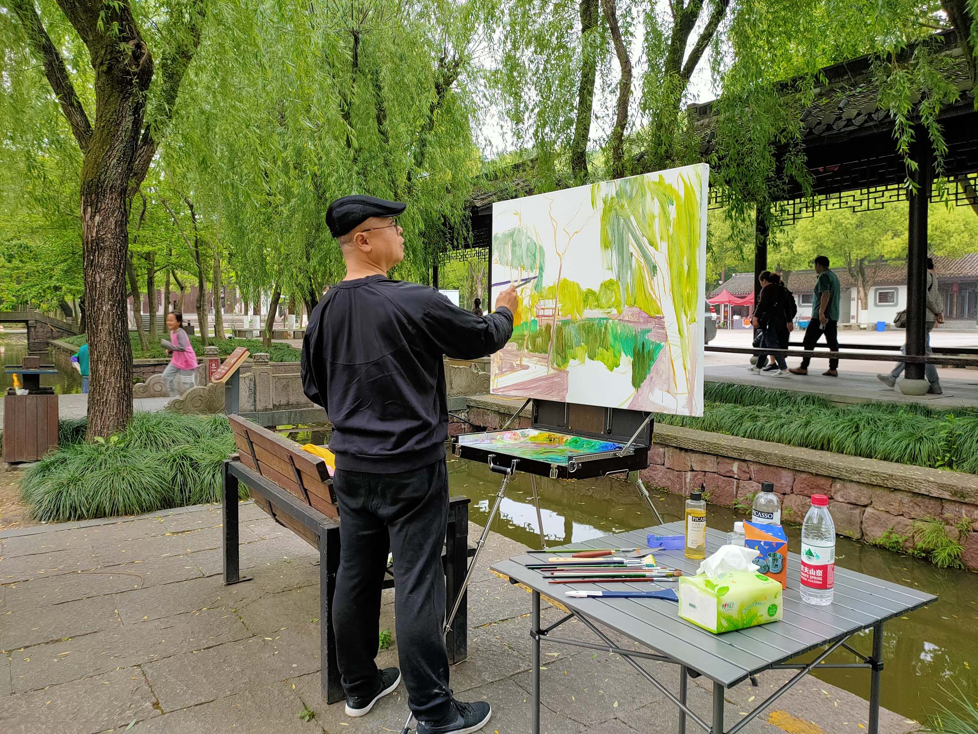 在5天的采风写生活动中,油画家走进了王冕九里、陈洪绶纪念馆、西施故里、千年香榧林、浦阳江农居、斯宅千柱屋、同山酒乡等地采风写生。越国古都、三贤故里的优美的田园风光和独特的人文气息激发了画家的创作热情,山中的石,村头的树,农民小院中的花草都成了创作的灵感之源。