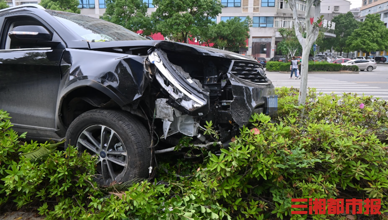 三湘都市报·新湖南客户端5月12日讯(记者 虢灿 通讯员 封跃林 段卓君 唐云波 剪辑 虢灿)看到前方道路上有人,实习期司机慌了神,赶紧踩刹车,却一脚踩在了油门上,小车轰鸣着冲向路侧绿化带,接连把两棵景观树拦腰撞断。万幸的是,没有人受伤。省交警总队今天通报了这起发生在娄底城区的事故。