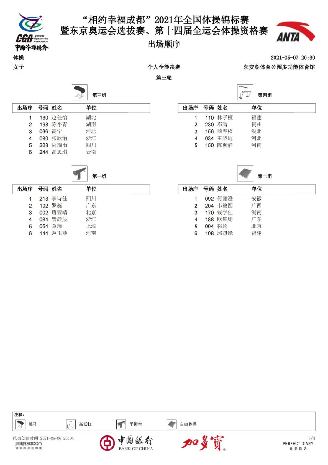 此外,女子全能决赛将于5月7日晚七点半展开。我省有两名队员参加本次全能决赛,分别是钱学佳和陈小青。今晚,她们将向奖牌发起冲击。