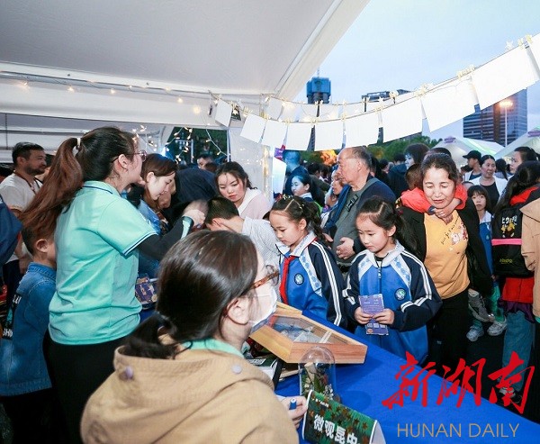 “我打卡了微观昆虫展位,学到了很多新知识,很想自己动手做一个昆虫标本。”“我参观了航天模型,希望未来能驾驶自己制作的飞船去宇宙探险。”科技集市的展位前,当地不少学生前来参观学习,科技种子在小小少年心中萌发。与以往不同的是,今年点科学集市还融入了乡村振兴元素和湘西特色,分为启明星、科技星、民族星、乡村星“四星”主题,展示了百年来党领导科技事业发展的光辉历程、湖南雄厚的科技力量、湘西特色的民族民俗文化内涵,还汇集了猕猴桃饮品、黄金茶等众多优质的脱贫攻坚成果,展示科技+特色农产品深加工的特色经济。