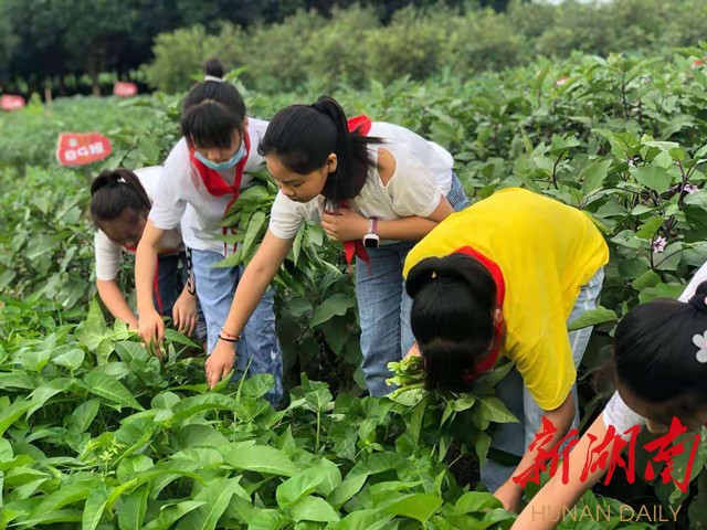 ▲学生走进劳动基地采摘蔬菜