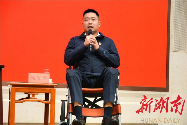 5月14日下午3时,中共中央宣传部举行中外记者见面会,请4位新时代残疾人事业领域党员代表与中外记者见面交流。4位新时代残疾人代表中,有一位来自湖南长沙,他就是长沙市天心区暮云街道残疾人专职委员汤俊杰。