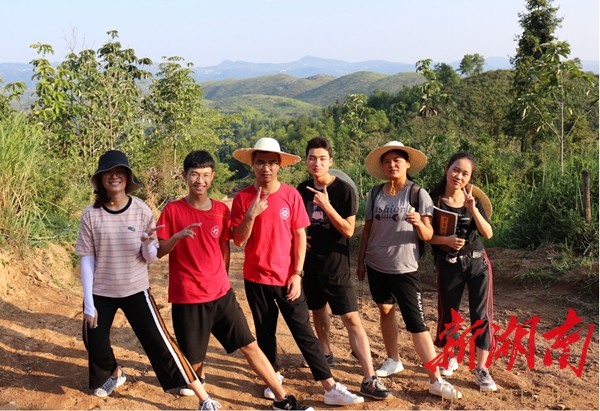 △去年疫情期间,欧雷(左三)与南华大学其他辅导员一起为学生晒被子