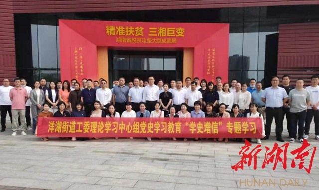 5月7日上午,长沙市岳麓区洋湖街道理论学习中心组(扩大)赴湖南省美术馆开展党史学习教育第二次专题学习,街道班子成员、各支部近百名党员集中参观以“精准扶贫 三湘巨变”为主题的湖南省脱贫攻坚大型成就展,直观感受湖南脱贫攻坚的巨大成就。参观学习中,大家被一张张照片和画像所吸引,他们细细感受、静静观赏,感慨脱贫攻坚以来湖南贫困地区翻天覆地的变化,真切感受到湖南在决战决胜脱贫攻坚中取得的突出成绩。