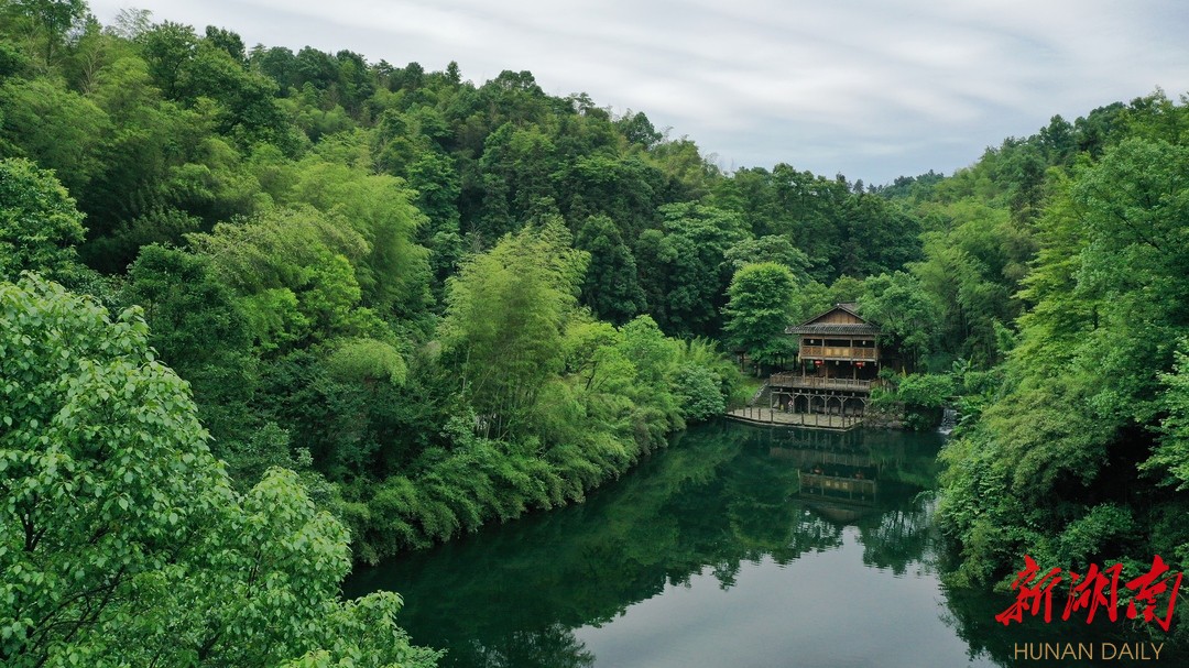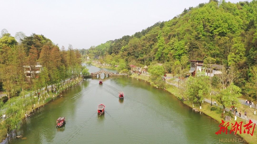 (桃花源“两山一湖”,游人悠享慢生活。卜云摄)