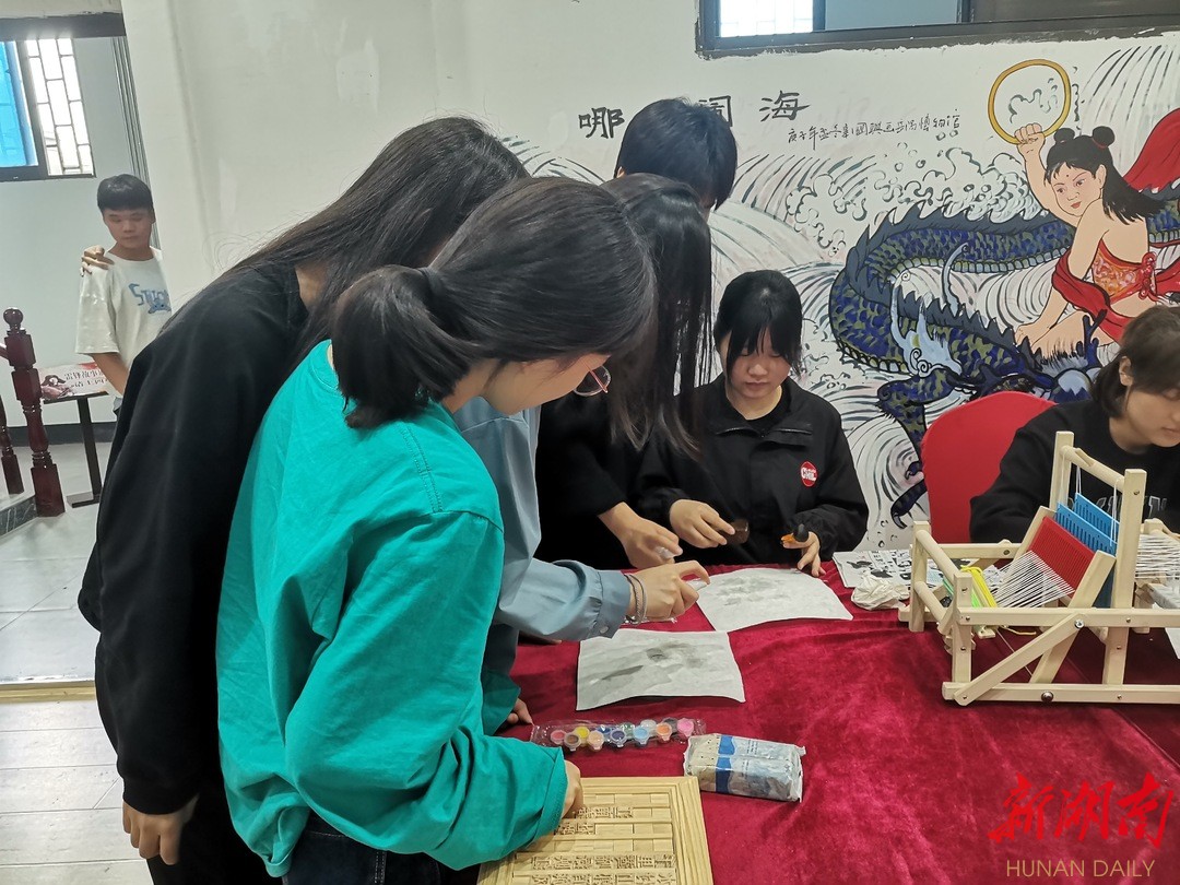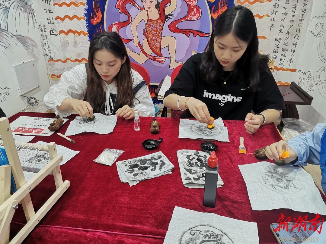 两位岳州剪纸非遗项目传承人巧手翩翩,剪刀在折叠的红纸上缱绻飞舞,不一会时间,展开便是一张精致的团花剪纸。剪纸根植于民间,关系民俗,反映民风,深含民情,记录着传统民间广大民众的生命体验,寄托着他们的情感憧憬。在传承人谢老师指导下,记者亲身体验,感受了一把剪纸的魅力。她说:“我从小喜欢剪纸,现在就希望将这一传统文化一直传承下去。”