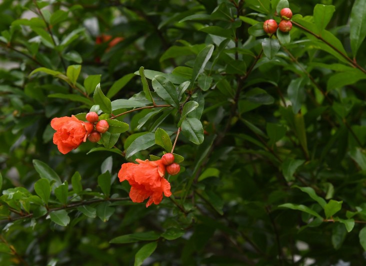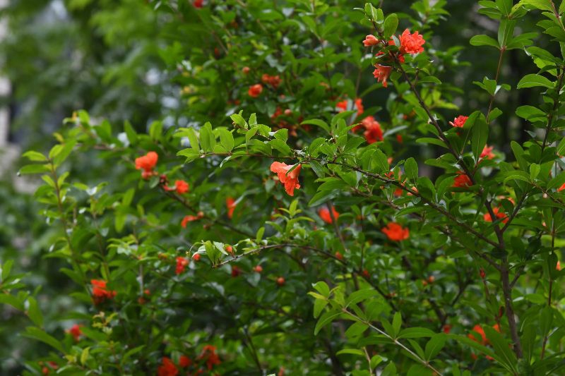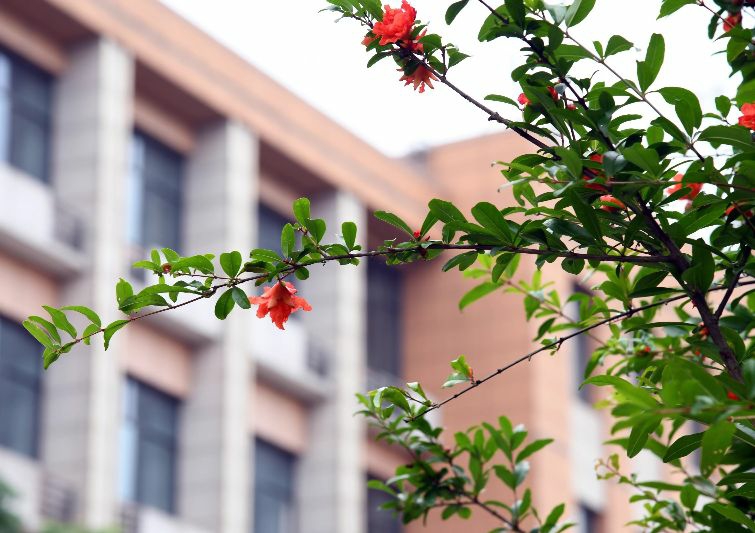 5月26日,长沙师范学院的石榴盛开了。青枝绿叶间,火红的石榴花很是惹人,真是“榴花开欲然”。宋文志 摄