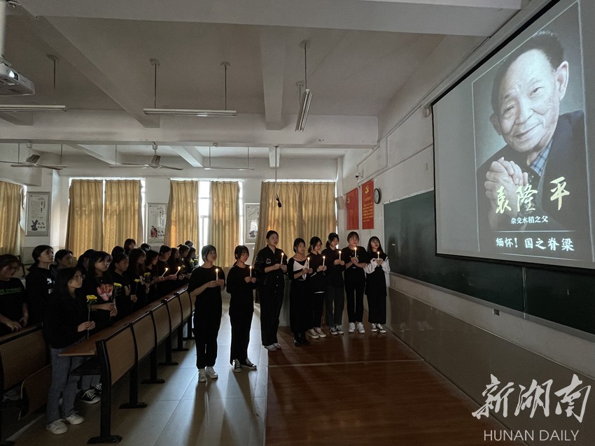 5月24日上午10时,湖南外贸职业学院旅游学院,学生在深切悼念袁隆平院士。当天,该校学生自发组织祭奠袁隆平院士活动。谷佳庆 摄